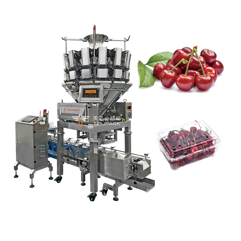เครื่องบรรจุบรรจุน้ําหนัก Blueberry Clamshell แบบอัตโนมัติเต็ม พร้อมเครื่องกระจายกล่อง